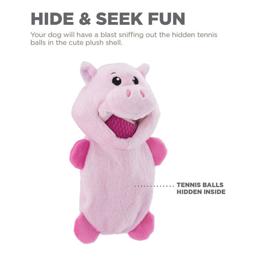 Outward Hound Hide-a-Ball Hogz Dog Toy - Piggy with 3 Tennis Balls