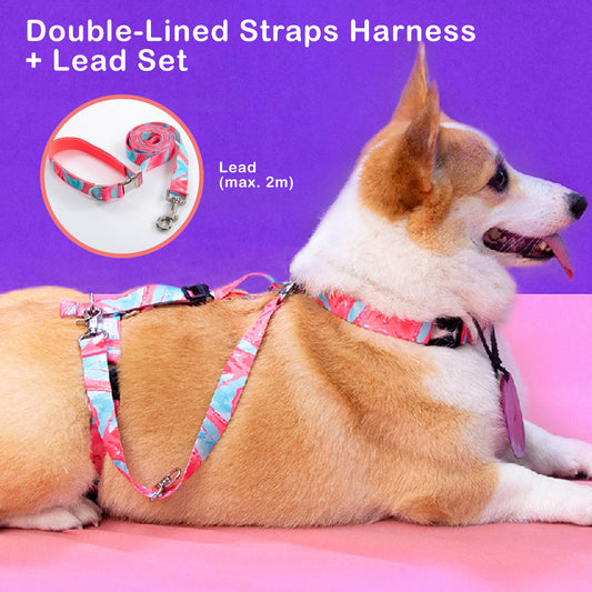 Banhamsisun Dog Double-Lined Straps No Pull Harness and Lead Set MARBLE PINK - Large